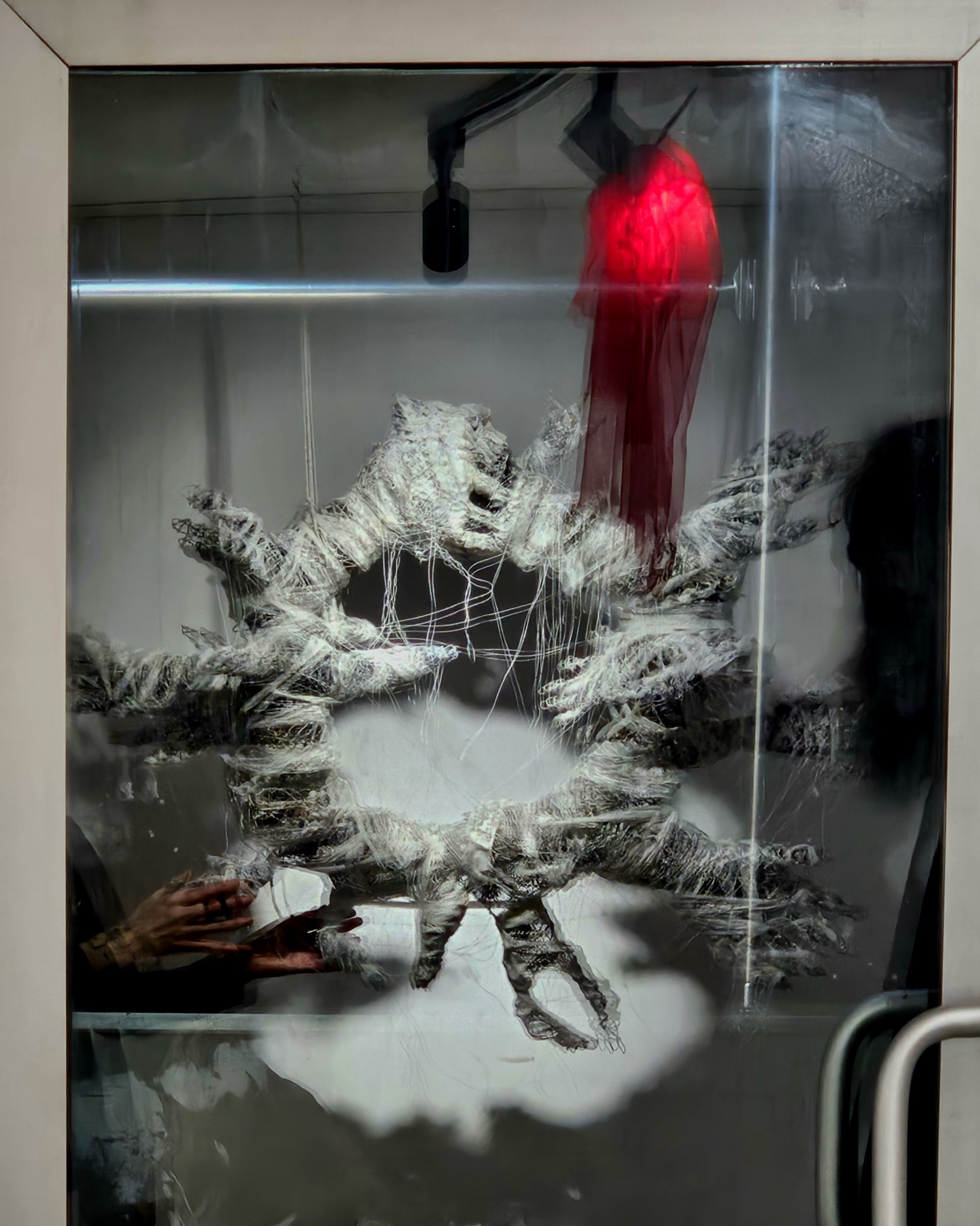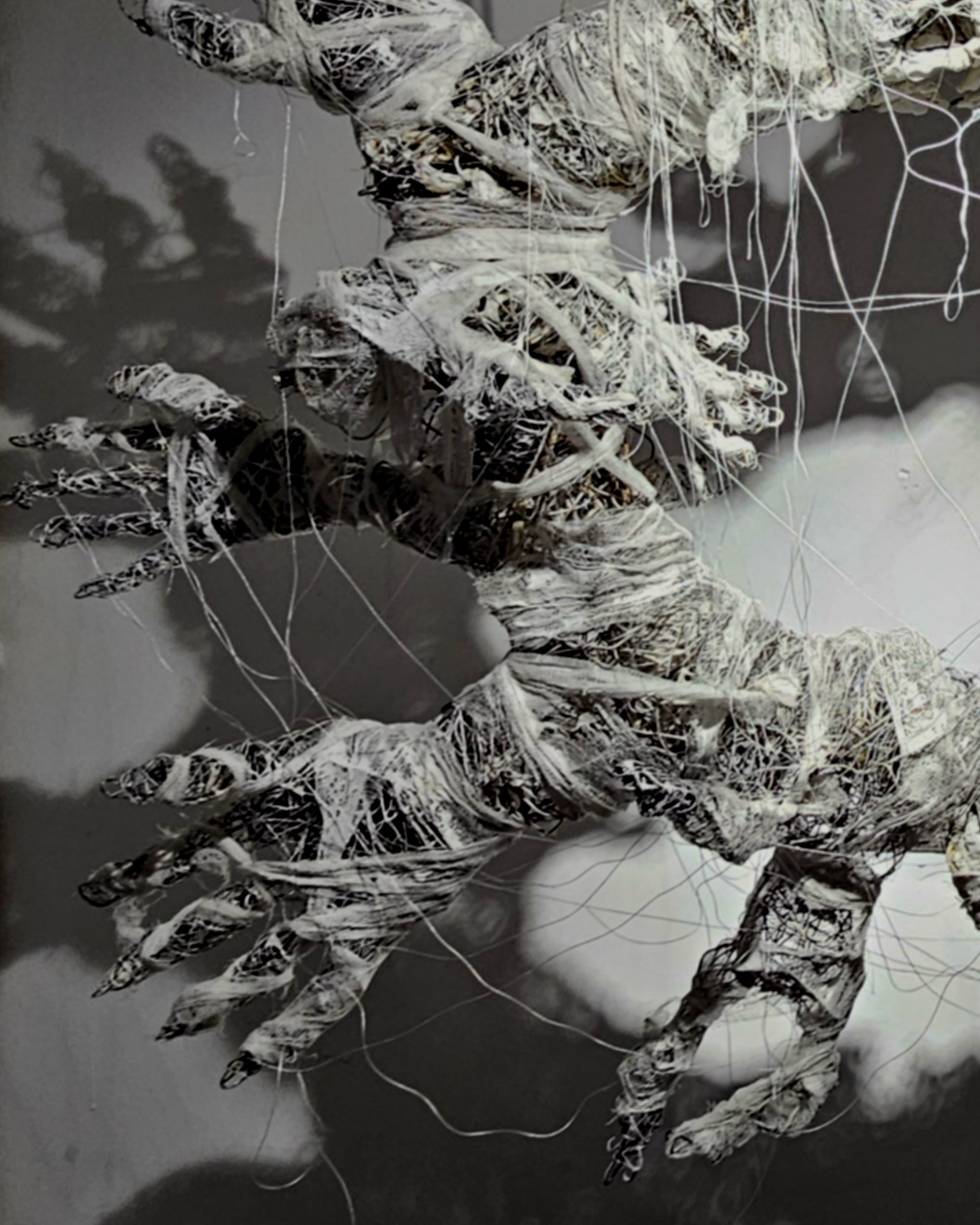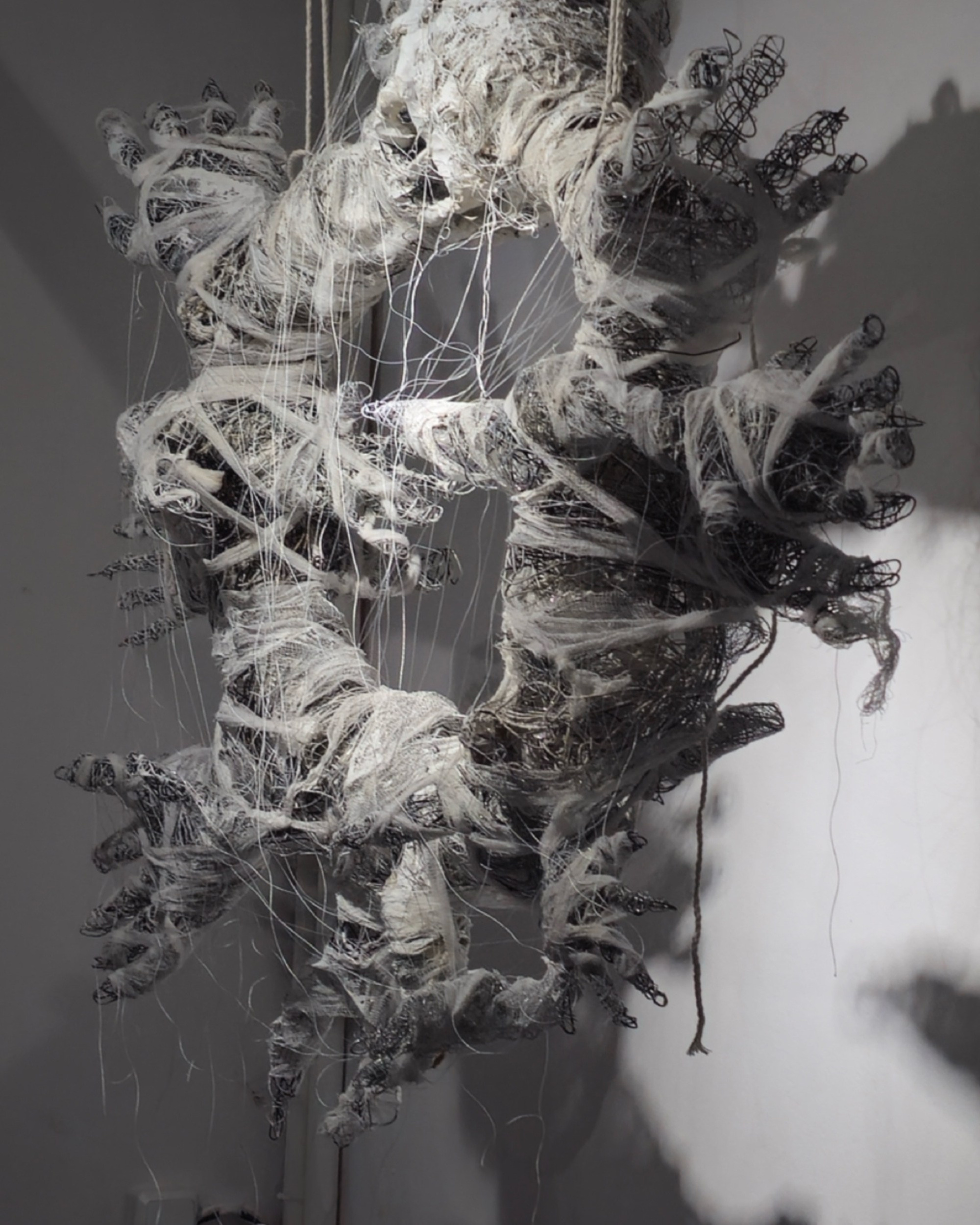 Materials: wire, acrylic, threads, bandagesDimensions: ~1 × 1 m